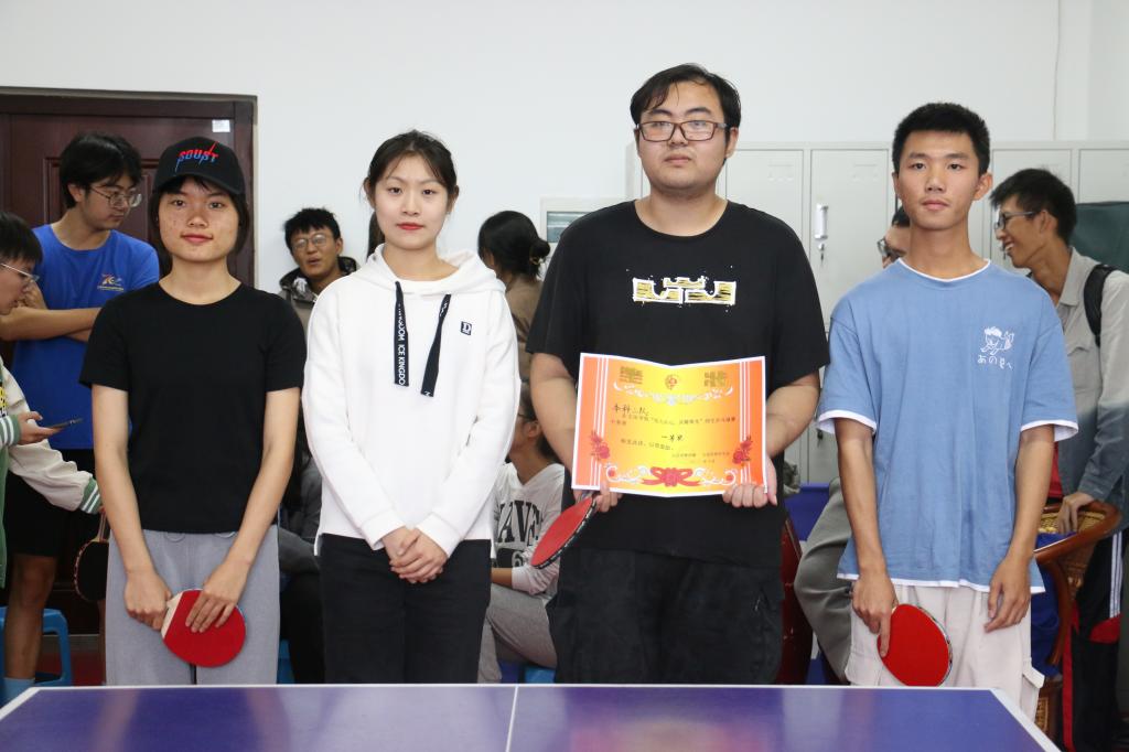 本次乒乓球联赛采用的是团体比赛,分为本科生组和研究生组,采取单循环赛制,各个队伍经过抽签决定比赛顺序。比赛过程中,参赛选手们都精神集中,搓球削球,你发我挡,短球角度刁钻,拉球力道迅猛,直拍、横拍、扣球、弧线球等都一一体现,选手们一个个精彩的防守和绝杀都引起观众的阵阵喝彩。历经近两个小时的角逐,本科二队夺得一等奖。