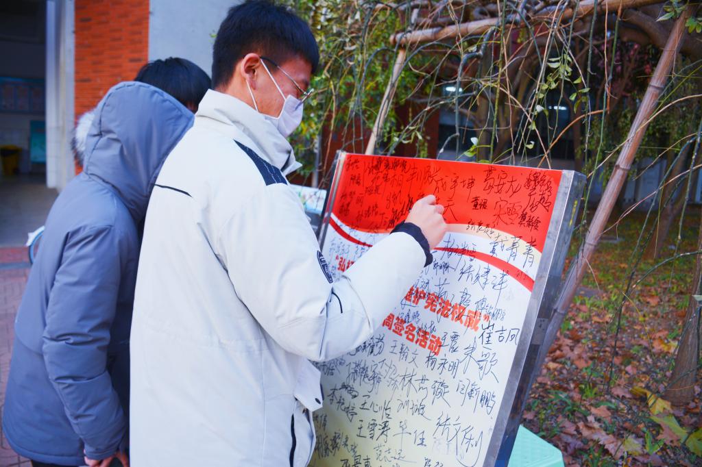 2020年12月3日,yl23411永利团委在第三个“宪法宣传周”开展之际举办“知宪以明道,学法以立身”宪法宣传签字活动,活动受到全院员工积极响应。