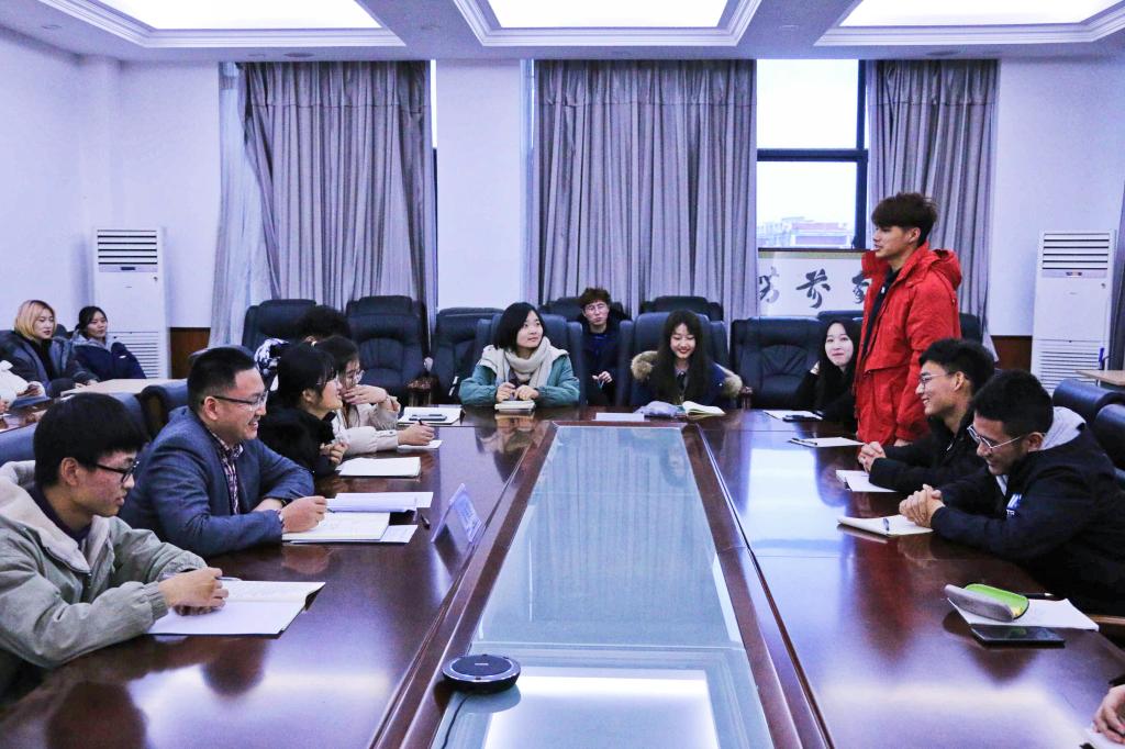 座谈会上,班长首先汇报了班级情况,与会同学都畅所欲言,积极汇报自己的学习、生活等情况。潘伟国仔细听取了同学们的情况汇报,耐心解答了同学们关心的教学、管理、服务等有关意见建议。