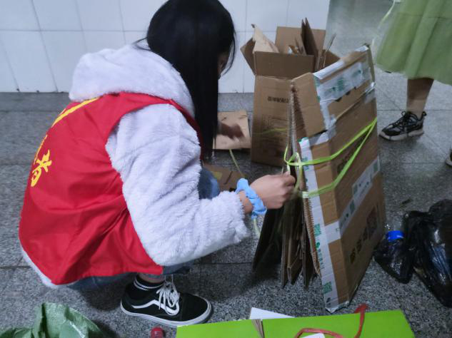 为给贫困地区儿童筹集爱心款项,弘扬“奉献、友爱、互助、进步”的时代新风,收集日常购物产生的废弃纸箱,促进资源的可循环利用,美化校园环境,yl23411永利积极响应校团委号召,开展“心随瓶动”志愿活动。