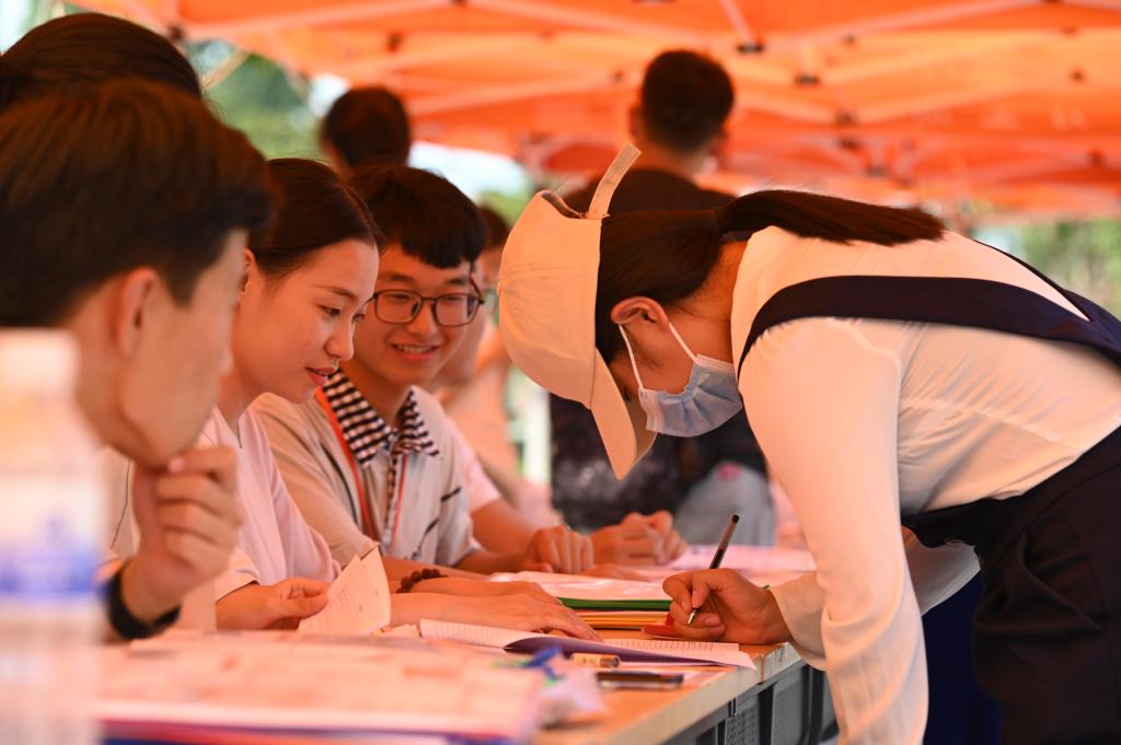 志愿者为新生办理报到手续