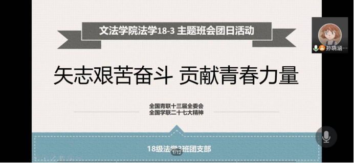 法学2018-3班、法学2019-1班等团支部积极响应号召,积极开展主题团日活动。在此次主题团日活动中,广大团员们对“青年”一词的含义又多了一份理解,多了一份感悟。时光辗转百余年,青年力量薪火相传。青年不怕难,中国就不怕难。法学2019-1班团支部书记杨泮雪表示,作为新时代团员青年,应当志存高远,脚踏实地,不畏艰难险阻,勇担时代使命,把个人的理想追求融入党和国家事业之中,为党,为祖国,为人民多做贡献。