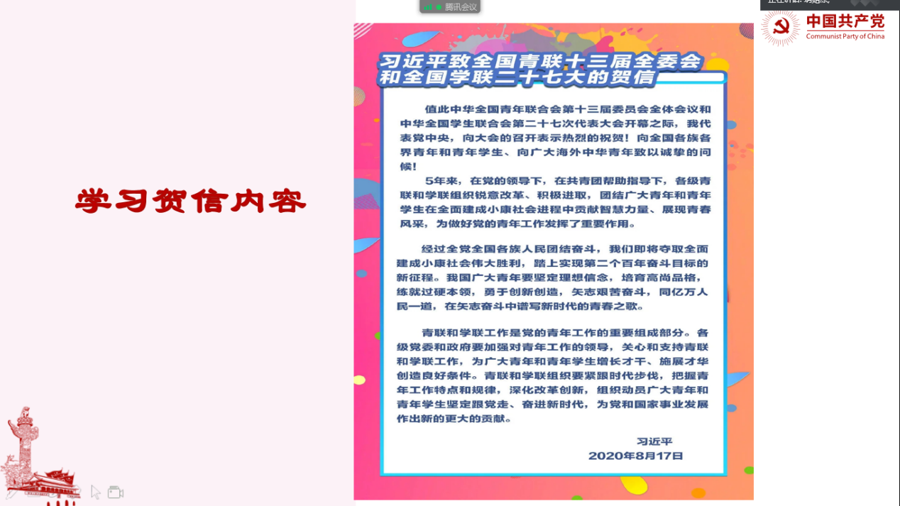广大团员在学习了习近平总书记在给全国青联十三届全委会和全国学联二十七大召开的贺信后,看到了习近平总书记对青年人诚挚的关怀和殷切的期待。广大青年团员表示,要坚定理想信念,抓住时代机遇,脚踏实地,苦练本领,增长才干,才能在时代浪潮中奔涌前行,为实现中华民族伟大复兴的中国梦贡献自己的青春力量,谱写新时代的青春之歌。
