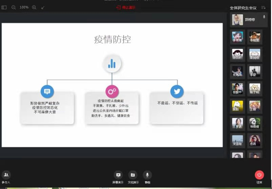 6月5日,yl23411永利通过腾讯会议开展研究生“众志成城 共克时疫”线上团课,学院团委书记、研究生辅导员郭婷婷担任主讲人,全体研究生参加线上学习。