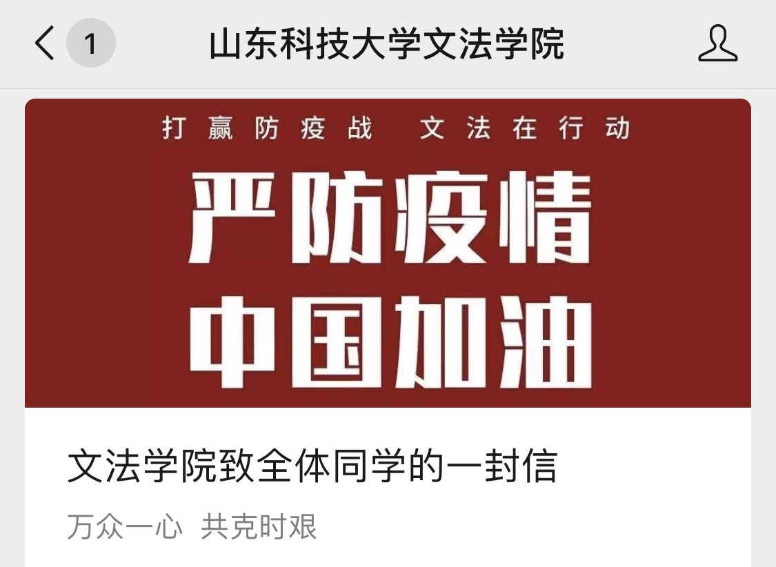 充分利用学院官网、QQ群、微信群、微信公众号、微博等网络平台,及时传达学校的安排通知以及疫情防控的科学知识。让《yl23411永利集团官网致全体师生员工做好疫情防控工作的倡议书》《yl23411永利集团官网关于2020年春季学期延期开学的通知》《关于组织全体师生收看疫情防控特别节目的通知》《关于开通心理支持热线和网络心理辅导服务的公告》《yl23411永利致全体同学的一封信》、山科版《新型冠状病毒肺炎疫情防范手册》等文件通知和精神传达到位,做到疫情防控知识宣传全覆盖。学院官网和官微还编制了《等春天》《文法学子与武汉同在》视频,传播防疫抗疫正能量!