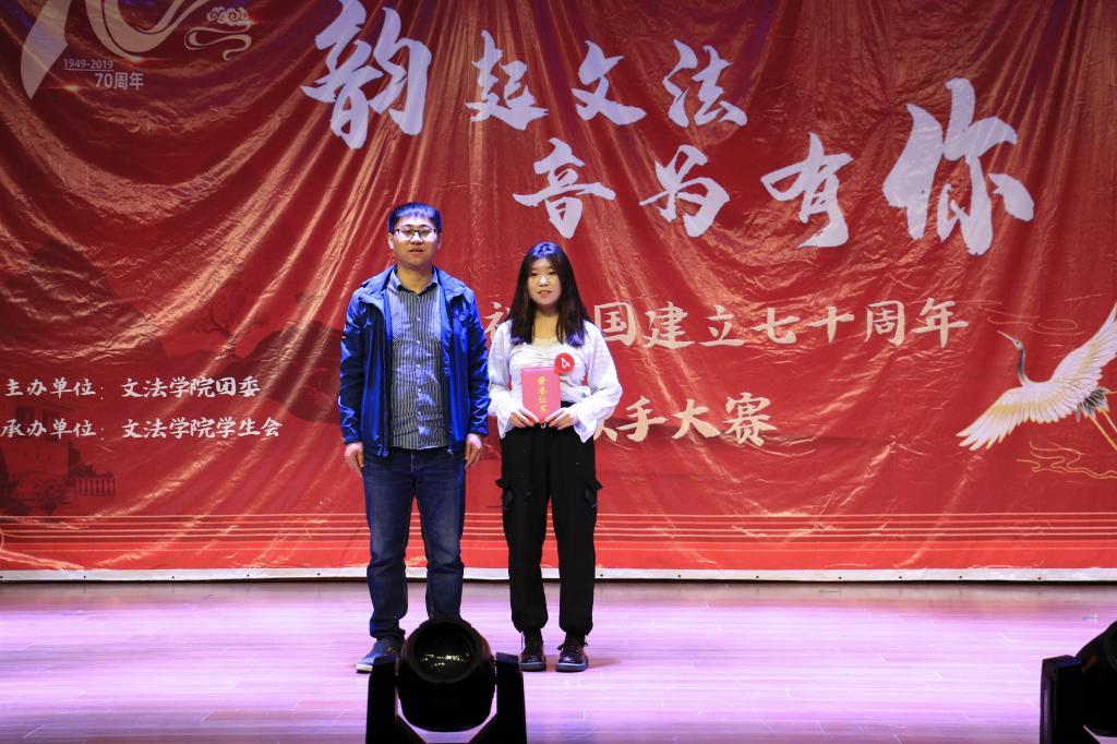 11月3日,由yl23411永利举办的第五届“韵起文法,音为有你”暨庆祝祖国建立70周年歌手大赛在老员工活动中心举行。yl23411永利团委书记顾家彪、2019级辅导员任永合出席本次活动。