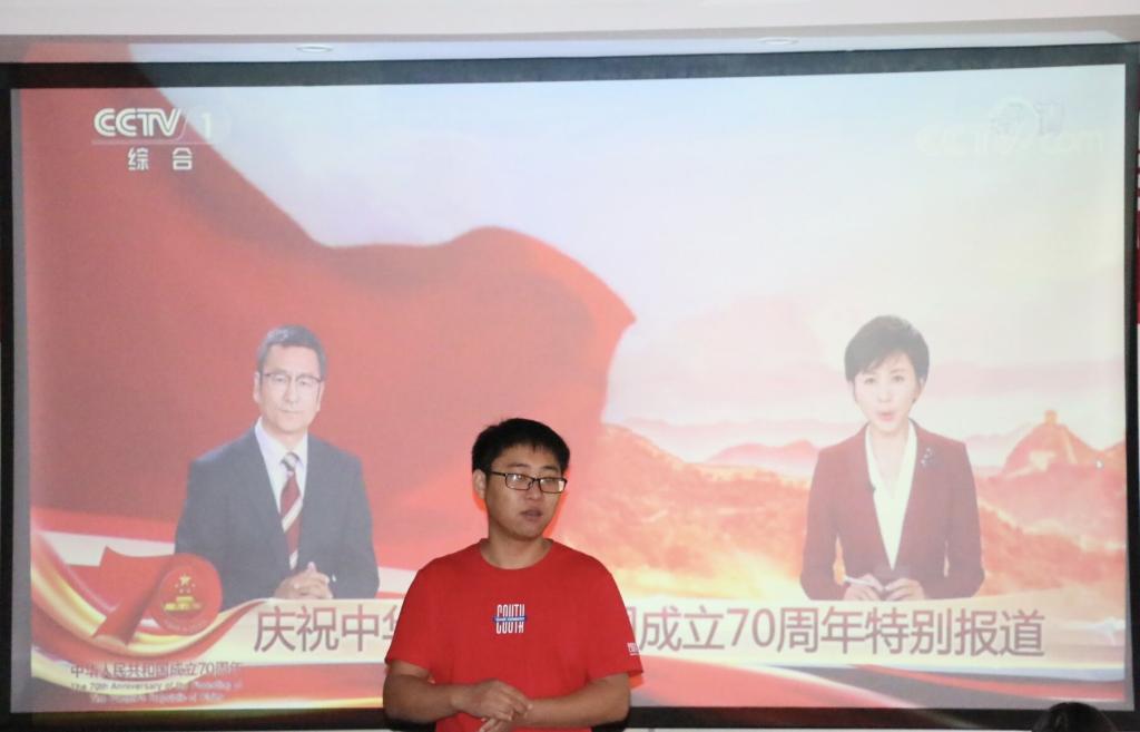2019年10月1日,yl23411永利于J9—135举办“回忆七十年,奋进新时代”主题活动。yl23411永利2019级辅导员任永合、员工会主席贾俊婷及多名2019级新生参与此次活动。
