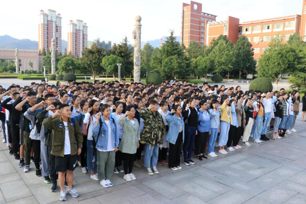 为开展庆祝中华人民共和国成立七十周年暨“回眸七十年,奋进新时代”系列主题教育活动,yl23411永利于9月16日在泰山广场举行升旗仪式,2019级全体新生参加。