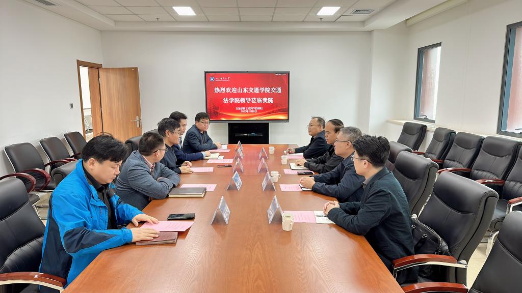 11月9日,山东交通学院交通法学院经理范冠峰一行四人来公司交流工作,学院领导班子成员会见客人。